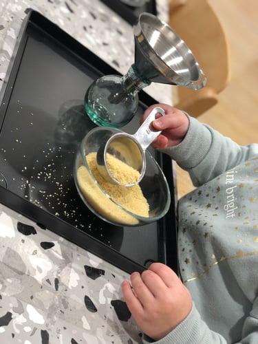 Pour manipuler, transvaser, patouiller, et utiliser ses doigts de 1000 façons, et chacun à sa façon. Concentration et plaisir garantis !